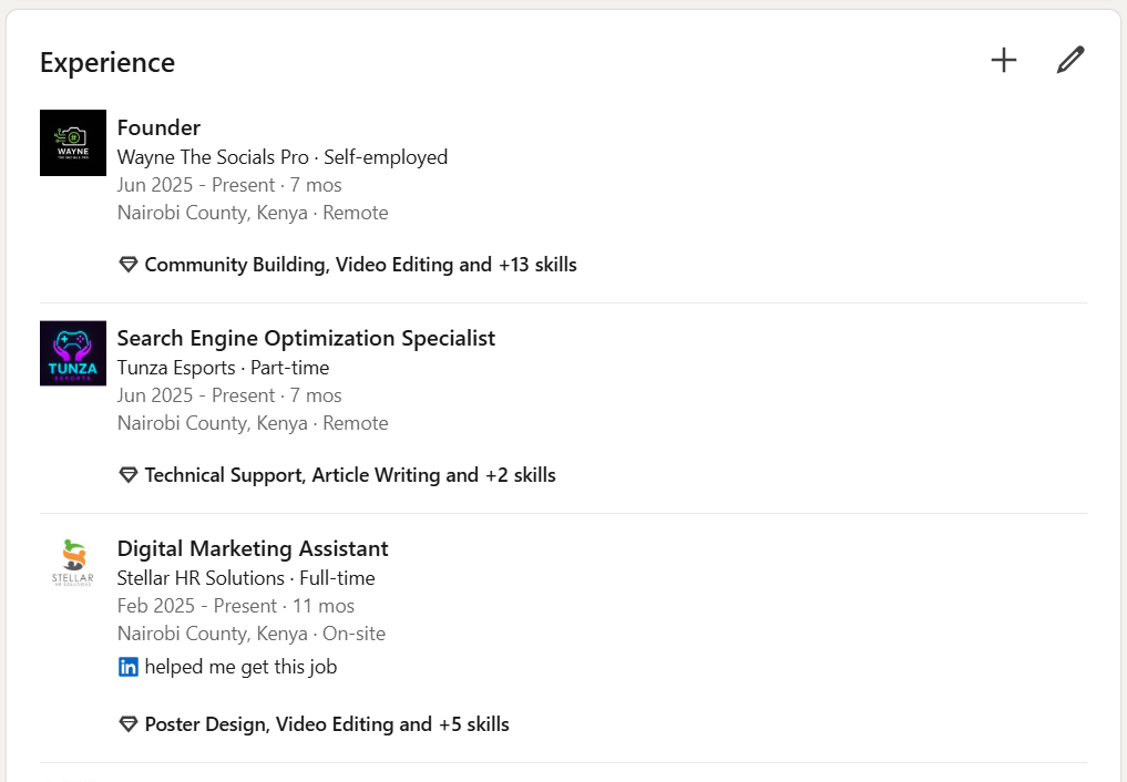 This guide breaks down common LinkedIn terms, explains what they really mean, and shows exactly how they appear on LinkedIn, using a fictional Kenyan profile so you can instantly relate.